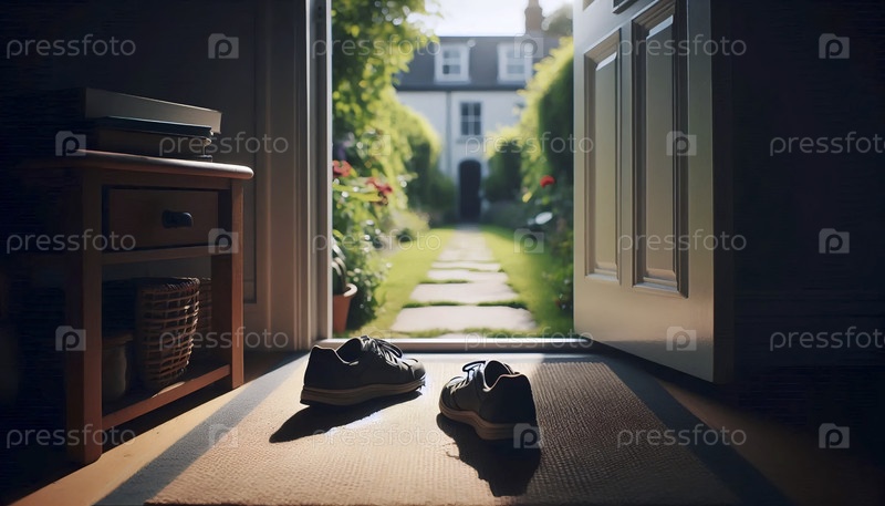На более широком снимке, показывающем дверной проход и взгляд на внешний мир, Ай создал изображение