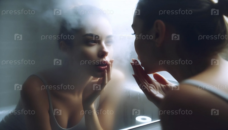 На более широком снимке, показывающем лицо в туманном зеркале с намерением шептаться, Ай создал изображение