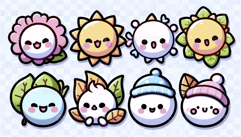 Набор клипартов с сезонными иконами кавайи, Ai generated image