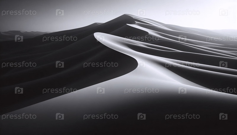 Эфирный пейзаж песчаных дюн на рассвете, где ветер создал идеальные волнистые узоры, Ai генерирует изображение