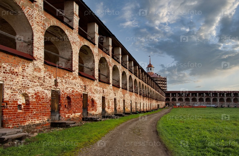 Кириллов, Россия. Архитектура крепостной стены Кирилло-Белозерского монастыря в виде колоннады