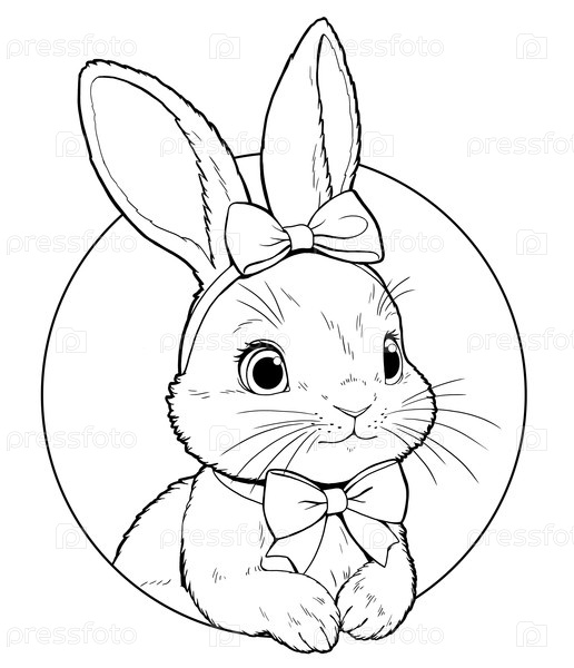 Милый кролик с бантиком. Раскраска для детей