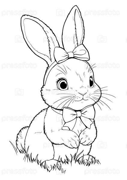 Пасхальный кролик на траве. Раскраска для детей