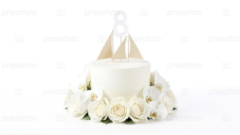 Элегантный белый торт на день рождения с орхидеями и номером 8