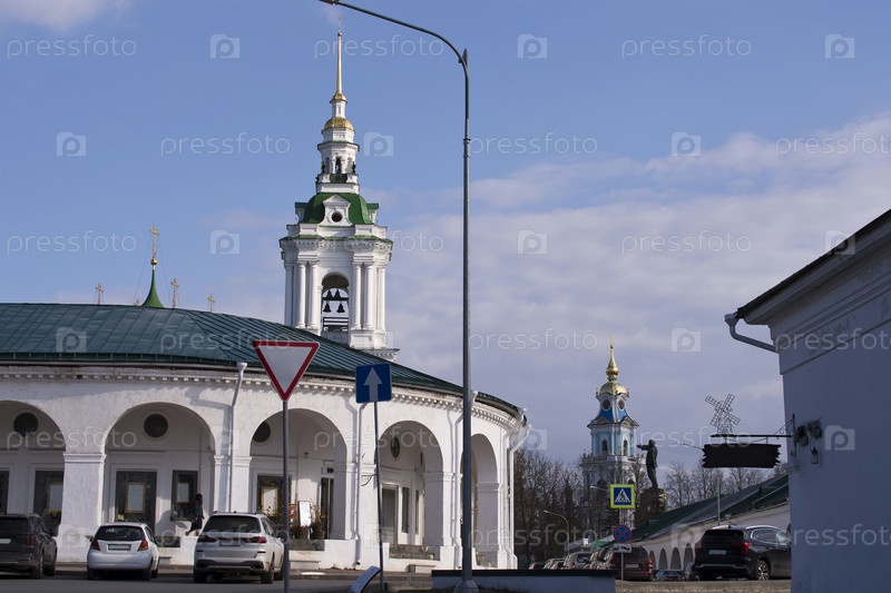 Вид на торговые ряды и кремль в центре Костромы