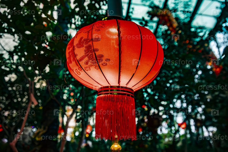 Традиционные китайские красные фонари с пожеланием счастливого Нового года