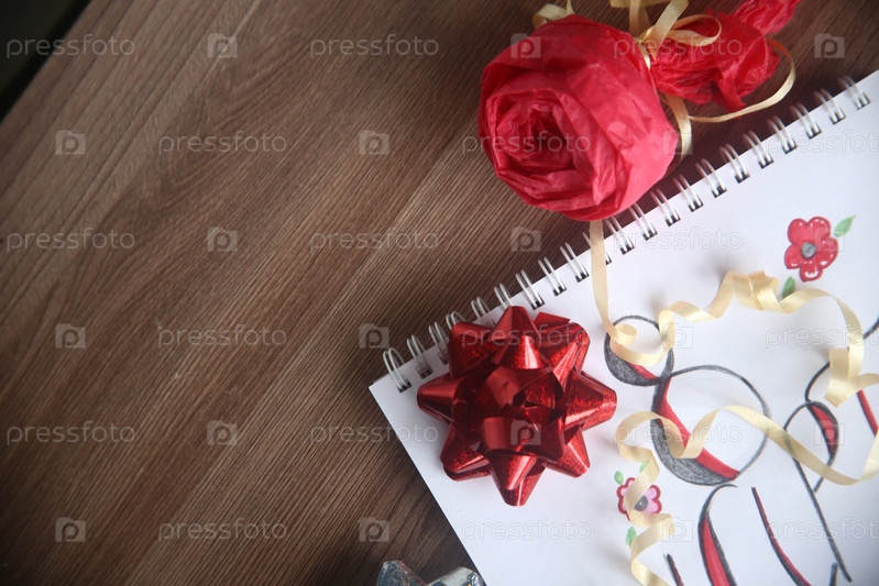 Подарочный красный бант и роза крупным планом