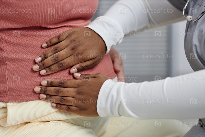 Беременная чернокожая женщина получает пренатальный осмотр от женского врача