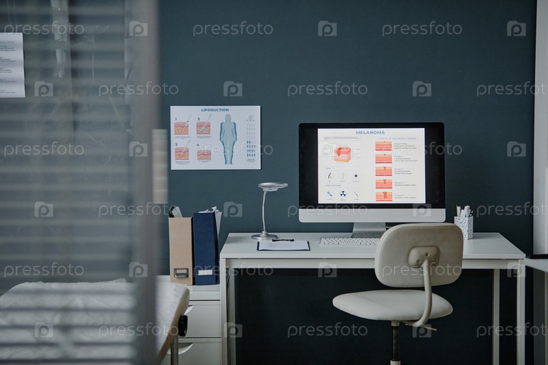 Офис дерматологии отображает информацию о меланоме на современном экране компьютера