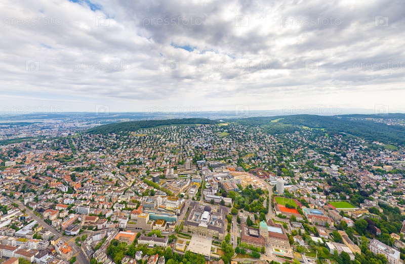 Цюрих, Швейцария Панорама города в пасмурную погоду Летний день Вид с воздуха