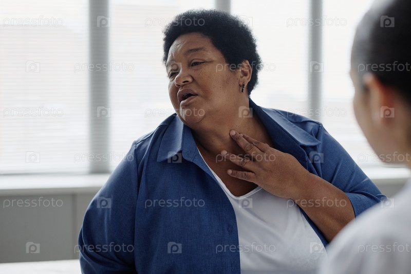Старшая чернокожая женщина описывает состояние кожи во время консультации с дерматологом