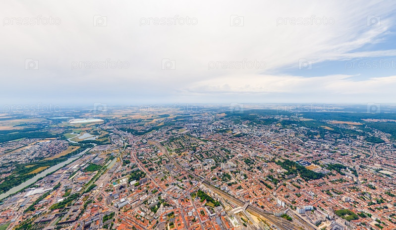 Нанси, Франция.Панорама города в летний день.Солнечная погода с облаками.Вид из воздуха