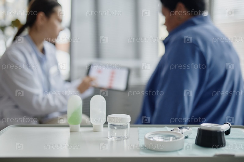 Кавказская женщина-дерматолог консультирует пациента среднего возраста в клинике
