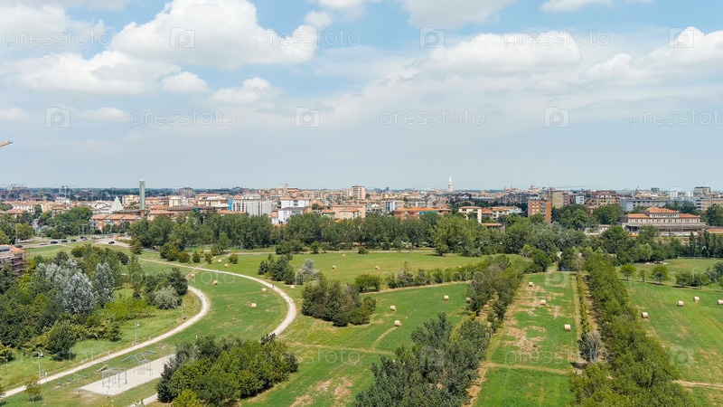 Общая панорама города Исторический центр Лето, аэрофотосъемка Модена