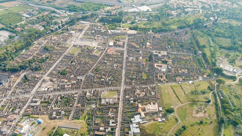 Помпеи - крупный древнеримский город, в настоящее время крупномасштабный археологический комплекс.Общий вид сверху, Aerial View Pompeii
