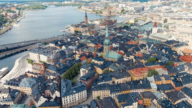 Стокгольм, Швеция.Старый город (Gamla Stan).Панорама города.Летний день, Aerial View