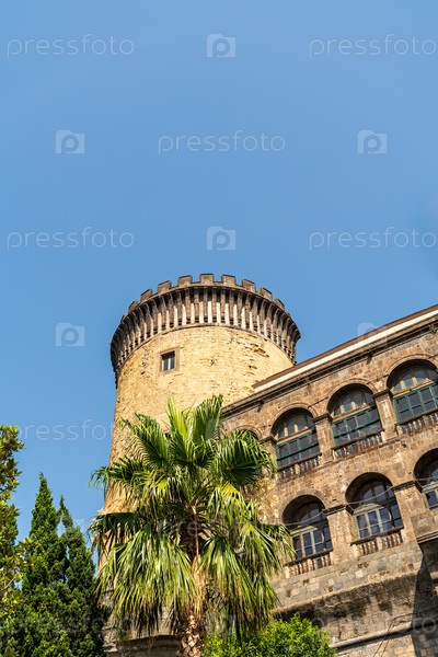 Неаполь, Италия. Кастель-Нуово - средневековая крепость. Солнечное летнее утро