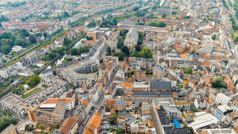 Гент, Бельгия Панорама центрального города с воздуха Облачная погода, летний день, Aerial View Ghent