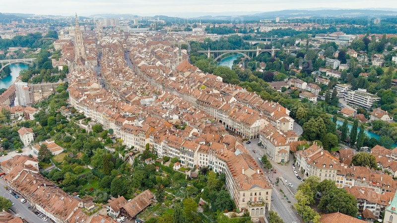 Берн, Швейцария.Бернский собор.Панорама города с видом на исторический центр.Летнее утро, Aerial View