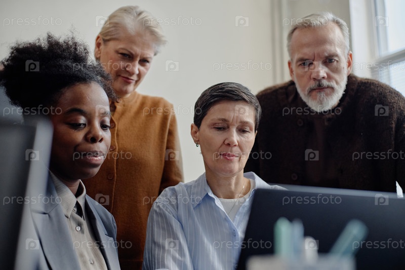 Старшеклассники сотрудничают на ноутбуке во время образовательного семинара