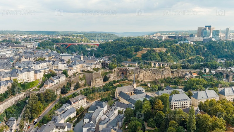 Казематы Бока Панорамный вид на историческую часть города Люксембург Город расположен в глубокой долине двух рек - Альзетте и Петруса, Aerial View