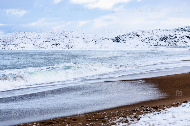 Серфинг на песчаном пляже Баренцева моря, воды Терьберки