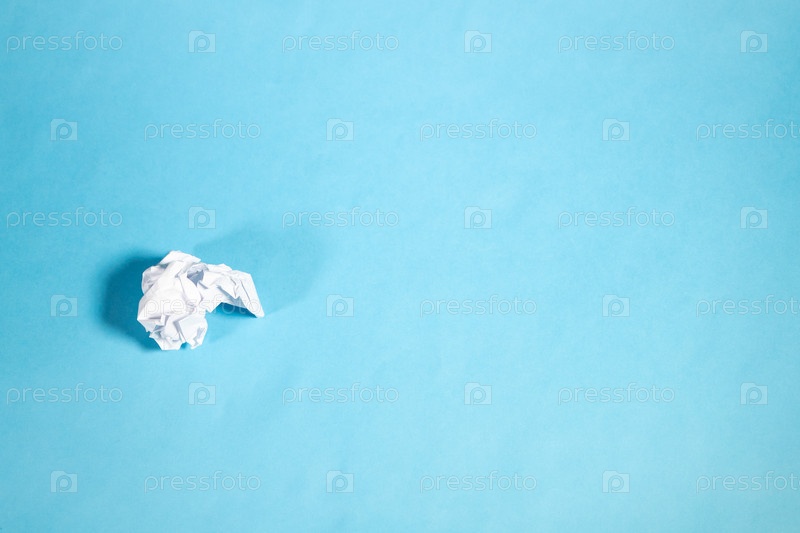 Выше вид на свернутый шар бумаги на синем