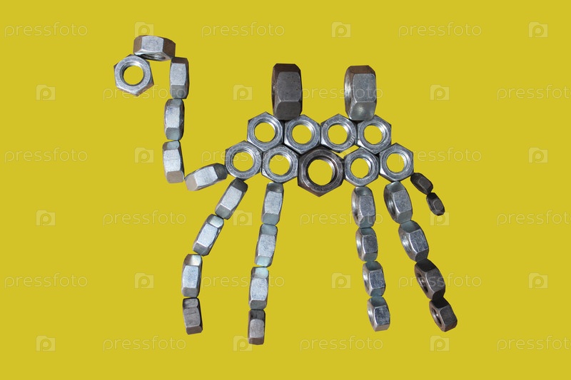 Выложенный из стальных гаек рисунок-композиция, похожая на верблюда