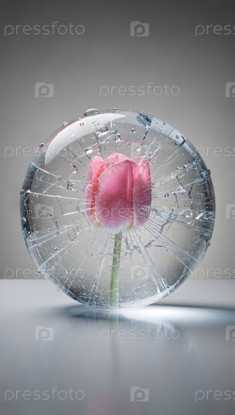 Бутоны тюльпанов в разбитой ледяной сфере с светло-розовой вертикали