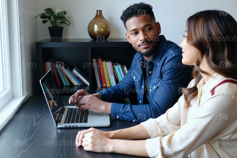 Портрет молодой азиатской пары и белого ребенка, улыбающихся вместе в помещении