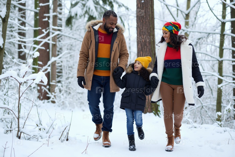 Улыбающаяся чернокожая женщина среднего возраста обнимает дочерей, читая поздравительную открытку