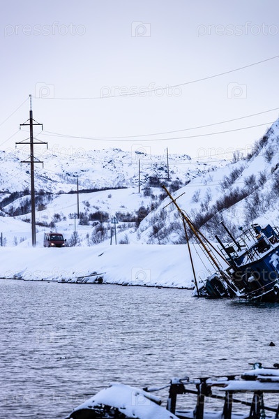 Дорога вдоль побережья Баренцева моря в деревне Терьберка