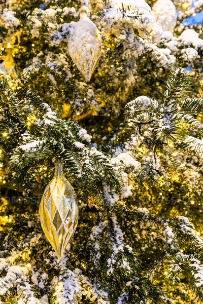 Стеклянные пузыри на открытой снежной рождественской елке