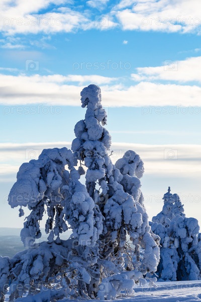 Замороженные деревья на холме возле Кандалакши зимой