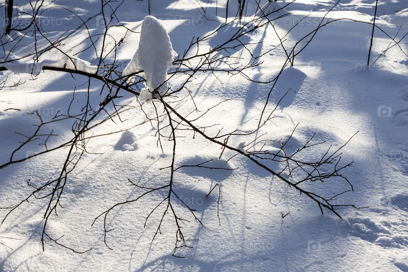 Солнечные глубокие снежные дюны в заснеженном лесу парка
