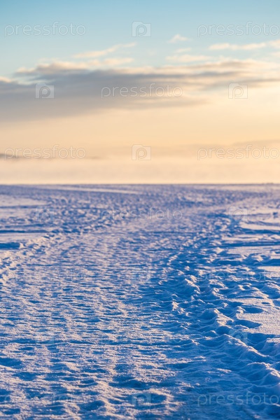 Пешеходный путь на снежной поверхности залива Кандалакша