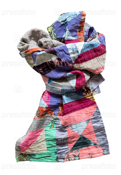 handcrafted long patchwork scarf tied isolated связанный плащ изолированный