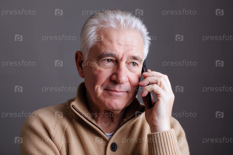 Старший кавказский мужчина разговаривает со смартфоном, в то время как мысленно отворачивается