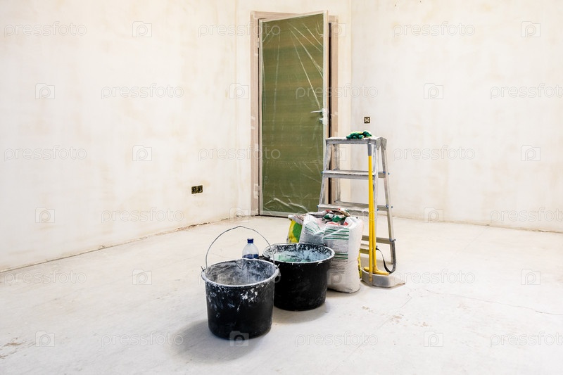 Штукатурное оборудование в комнате с грубой отделкой