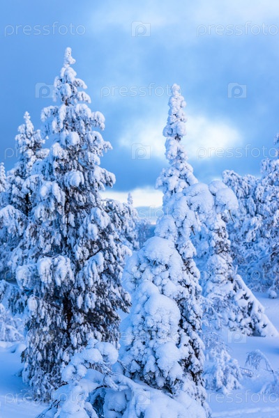 Вид на заснеженные деревья на снежном холме зимой