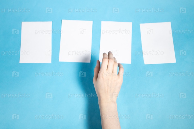 Рука выбирает лист из четырех пустых белых листов