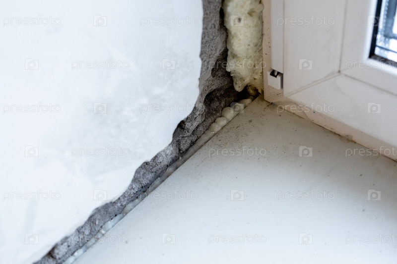 Бетонный порог, заполненный строительной пеной, сломан
