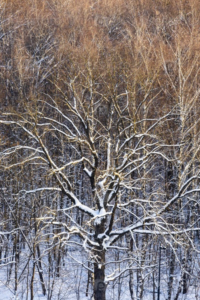 Верхний вид солнечного снежного дуба в лесу