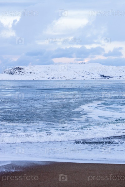 Вид на песчаный пляж Баренцева моря в Терьберке