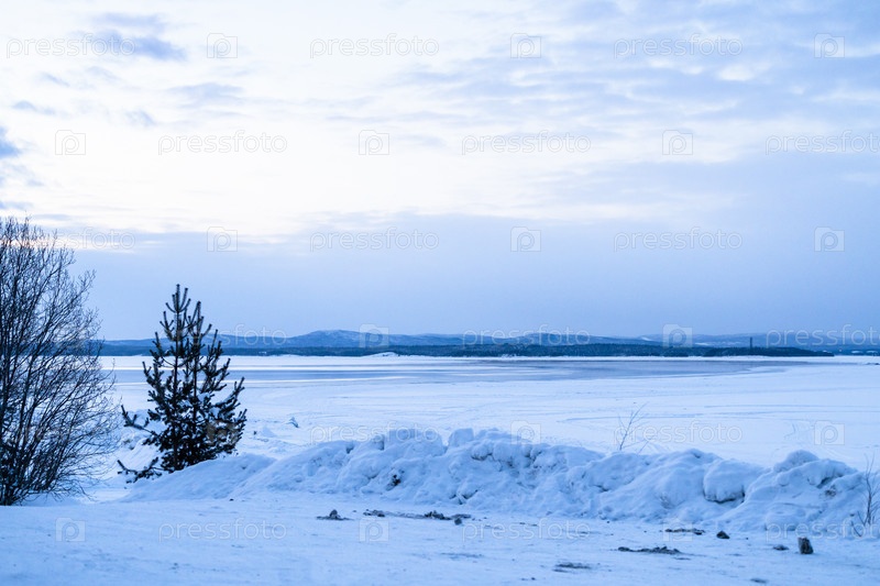 Замороженная вода залива Кандалакша зимнее утро
