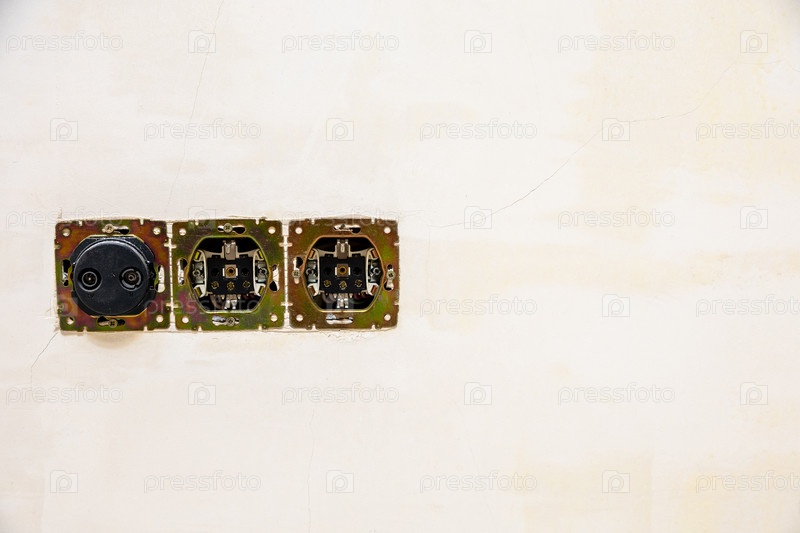 Демонтированная розетка и антенна на стене