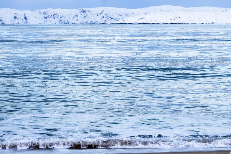 Водная поверхность на пляже Баренцева моря в Терьберке