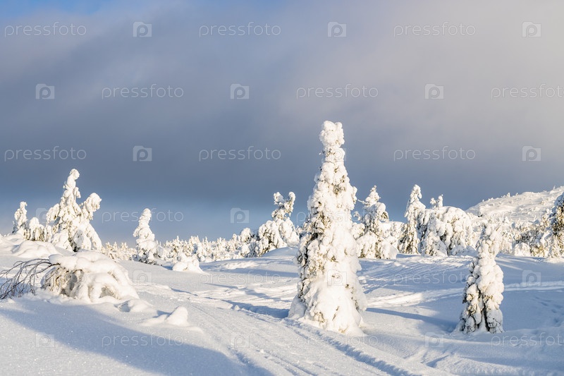 Снежная дорога на холме возле города Кандалакша зимой