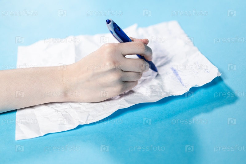 Рукой ручкой подчеркивается на складчатой бумаге