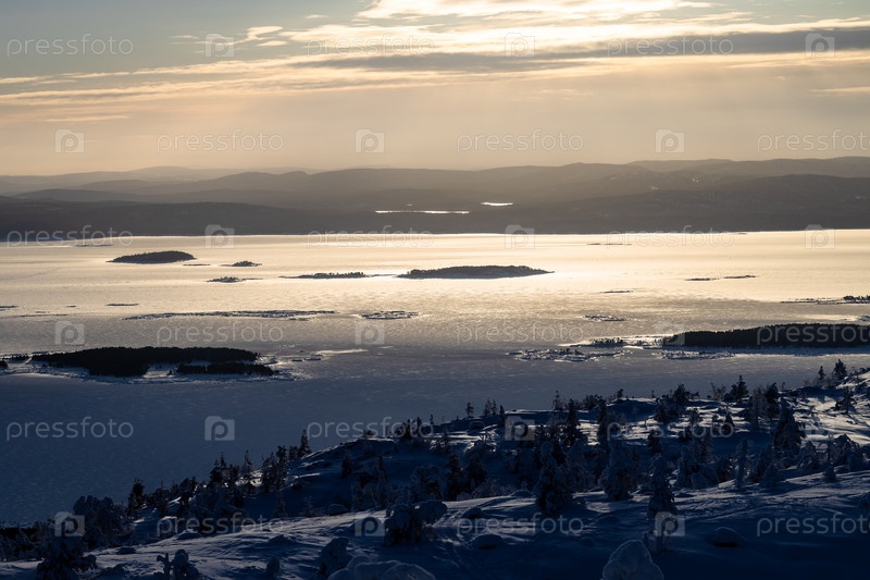 Вид на острова в Кандалакской бухте зимой